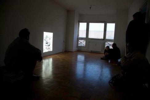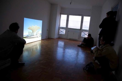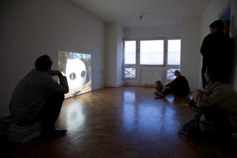 For the exhibition at Bibliothekswohnung with Arno Brandlhuber Isa Melsheimer has developed a three-piece concrete object that functions as a planter. Its elements could be multiplied and added to a circle. The object relies on the construction material of the prefabricated building completed in 1989, where Anna-Catharina Gebbers | Bibliothekswohnung is located. Furthermore, the sculpture liaise with the flower pots in the yard and on a platform roof outside the window. Beyond that, Isa Melsheimer and Arno Brandlhuber have found plant pots made of concrete all over the world, and photographed them for their growing image archive of interesting architecture. For the exhibition at Anna-Catharina Gebbers | Bibliothekswohnung they have joined for the first time their image archives for a screening. In addition to some concrete pots there are mainly houses on view that attracted the formal interest of the artist and the architect: Architectural icons like Villa Malaparte which was built by Adalberto Libera, Le Corbusier's Villa Savoye and the private home of Lina Bo Bardi, but also buildings created by lesser known architects like houses in Kazakhstan's capital Astana, backyards in Kreuzberg and Isa Melsheimer collections of photos of , ruins, disasters and houses built on cliffs. Another element of the exhibition is a stack of books from Isa Melsheimer‘s and Arno Brandlhuber‘s library: These publications are here to invite visitors to further explorations of the issue ‘concrete’.