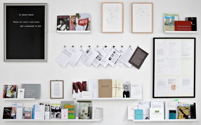 Artists, curators and art writers who are living in Berlin were invited to select texts and books they‘ve recently written or published, texts which are important to them, or different examples which illustrate the variety of their œuvre. These writings are made available in a reading room at Bibliothekswohnung. Visitors are invited to sit down, read and experience the multiplicity and quality of Berlin‘s artworld art of writing.